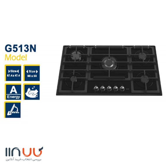 اجاق گاز شیشه ای 5 شعله آلتون مدل G513N ، در ابعاد 50*90 سانتی متر از طراحي زيبايي برخوردار است که داراي جنس شيشه مشکي سکوريت نشکن ، ولوم فلزی و شبکه چدنی لولایی می باشد . اين اجاق مجهز به شير ترموکوپل دار فوق سريع ، سپر حرارتی تعبیه شده روی شبکه چدنی ، سر شعله پلوپز با راندمان بالا و پوشش آسان تمیز شونده برای روغنگیر ها مي باشد. همچنین دارای گارانتی 24 ماه الباگاز و گرید مصرف انرژی A است .