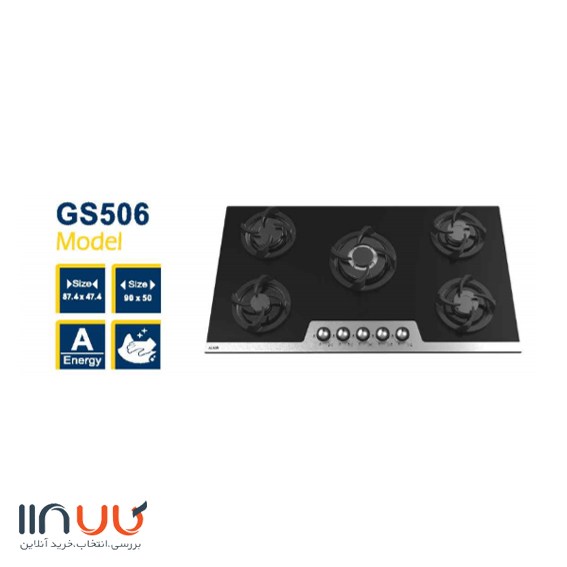 اجاق گاز شیشه ای و قاب استیل 5 شعله آلتون مدل GS506 ، در ابعاد 50*90 سانتی متر از طراحي زيبايي برخوردار است که داراي جنس شيشه مشکي سکوريت نشکن و ولوم فلزی می باشد. اين اجاق مجهز به شير ترموکوپل دار فوق سريع ، سپر حرارتی و سر شعله پلوپز با راندمان بالا مي باشد. همچنین دارای گارانتی 24 ماه الباگاز و گرید مصرف انرژی A است.