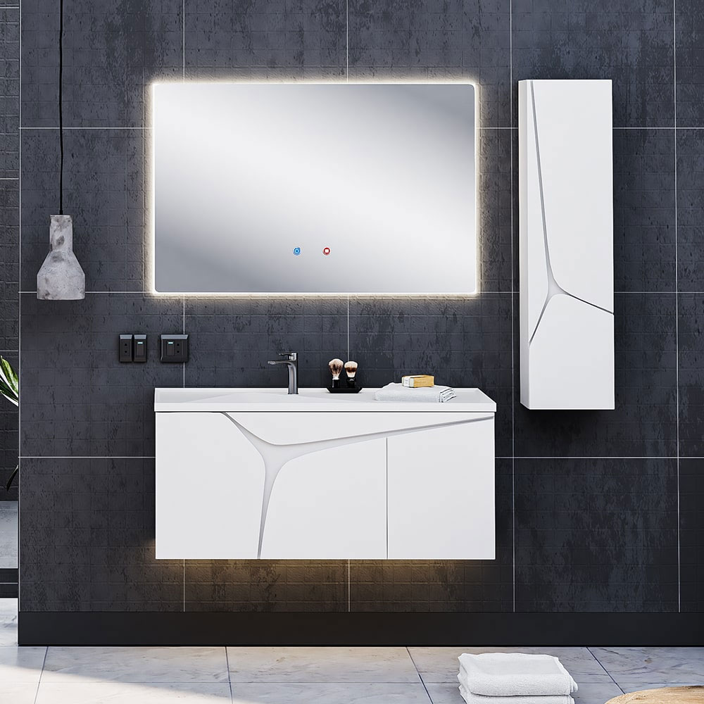 ابعاد روشویی کابینتی مدل 603 به طول 100Cm و عرض 42Cm می باشد. ابعاد آینه این مدل روشویی کابینتی 100cm طول و 65cm عرض می باشد. روشویی کابینتی لوکس کابین مدل 603 از جنس کابینت pvc ضد آب می باشد و جنس کاسه روشویی هم از کوارتز است. روشویی کابینتی لوکس کابین مدل 603 در برابر آب و رطوبت مقاوم می باشد. برای نصب این روشویی شما می توانید از شیر روشویی پایه کوتاه استفاده کنید. این محصول جزو روشویی با کاسه روشویی توکار می باشد در صورتی که بخواهید انواع مدل وقیمت کاسه روشویی روکاررا مشاهده کنید روی لینک کلیک کنید. کالا 118 نمایندگی انواع روشویی کابینتی می باشد و در این سایت می توانید انواع روشویی کابینتی ارزان قیمترا مشاهده کنید. این ست شامل ( کاسه روشویی , کابینت , آینه , باکس) می باشد.